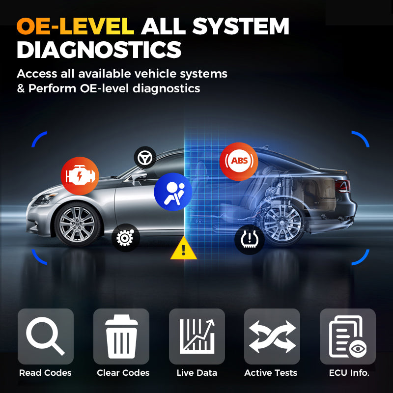 OTOFIX D1 performs complete systems diagnoses including functional tests, retrieving vehicle diagnostic information (error codes), and freeze frame data and live data for various vehicle control systems (engine, transmission, ABS, etc.). OTOFIX provides its users with all the information important to a vehicle's health in an accessible, easy-to-read way.